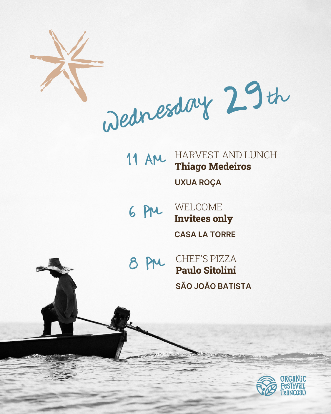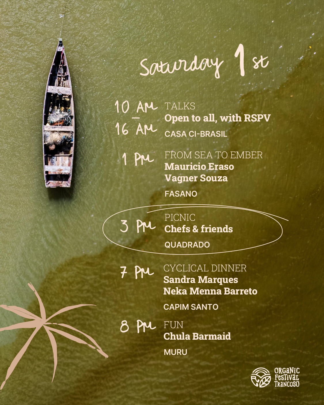 The godmothers and ambassadors Roberta Sudbrack (Sud the Green Bird, Rio de Janeiro), Morena Leite and Sandra Marques (Capim Santo Trancoso, Bahia) join Janaina Torres (Bar da Dona Onça, São Paulo), Dario Costa (Madê, Santos), Neka Menna Barreto (Neka, São Paulo), Wellington Barcellos (Copacabana Palace, Rio de Janeiro), Luiz Filipe Souza (Evvai, São Paulo), Juliana Pedrosa (Uxua, Trancoso), George McLeod (Sem, Lisbon), João Diamante (February Two, Rio de Janeiro), Saiko Izawa (Rosewood São Paulo), Dona Jandira (Floresta, Trancoso), Marcelo Schambeck (Capincho, Porto Alegre), Victoria Fiechter (Almar, Trancoso), , Vagner Souza (Fasano Trancoso), Mauricio Eraso (Fasano Punta Del Leste), Priscilla Herrera (Green Banana, São Paulo On the drinks side, Chula Barmaid (Soledad), Diego Cartier (Vivente Vinhos, Rio Grande do Sul), Leonardo Andrade and Fernando Goldenstein (Fermented Beverages Company, São Paulo) will all participate.